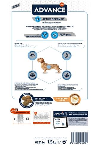 Advance Mini Light Hundefutter wurde speziell für ausgewachsene Hunde kleiner Rassen (bis 10 kg) entwickelt, die übergewichtig sind oder Gefahr laufen, übergewichtig zu werden. Diese Rezeptur mit Hühnchen und Reis ist fettarm und proteinreich und hilft Ihrem Hund, sein Gewicht zu halten, ohne Muskelmasse zu verlieren. Der hohe Ballaststoffgehalt sorgt für ein anhaltendes Sättigungsgefühl, während leicht verdauliche Zutaten die Verdauung unterstützen. Die kleinen Kroketten haben die perfekte Größe für die Kiefergröße kleiner Hunde und tragen zur Reduzierung von Plaque bei. Dieses Futter ist frei von künstlichen Konservierungs- und Farbstoffen, damit Ihr Hund auf natürliche Weise eine gesunde Mahlzeit genießen kann.