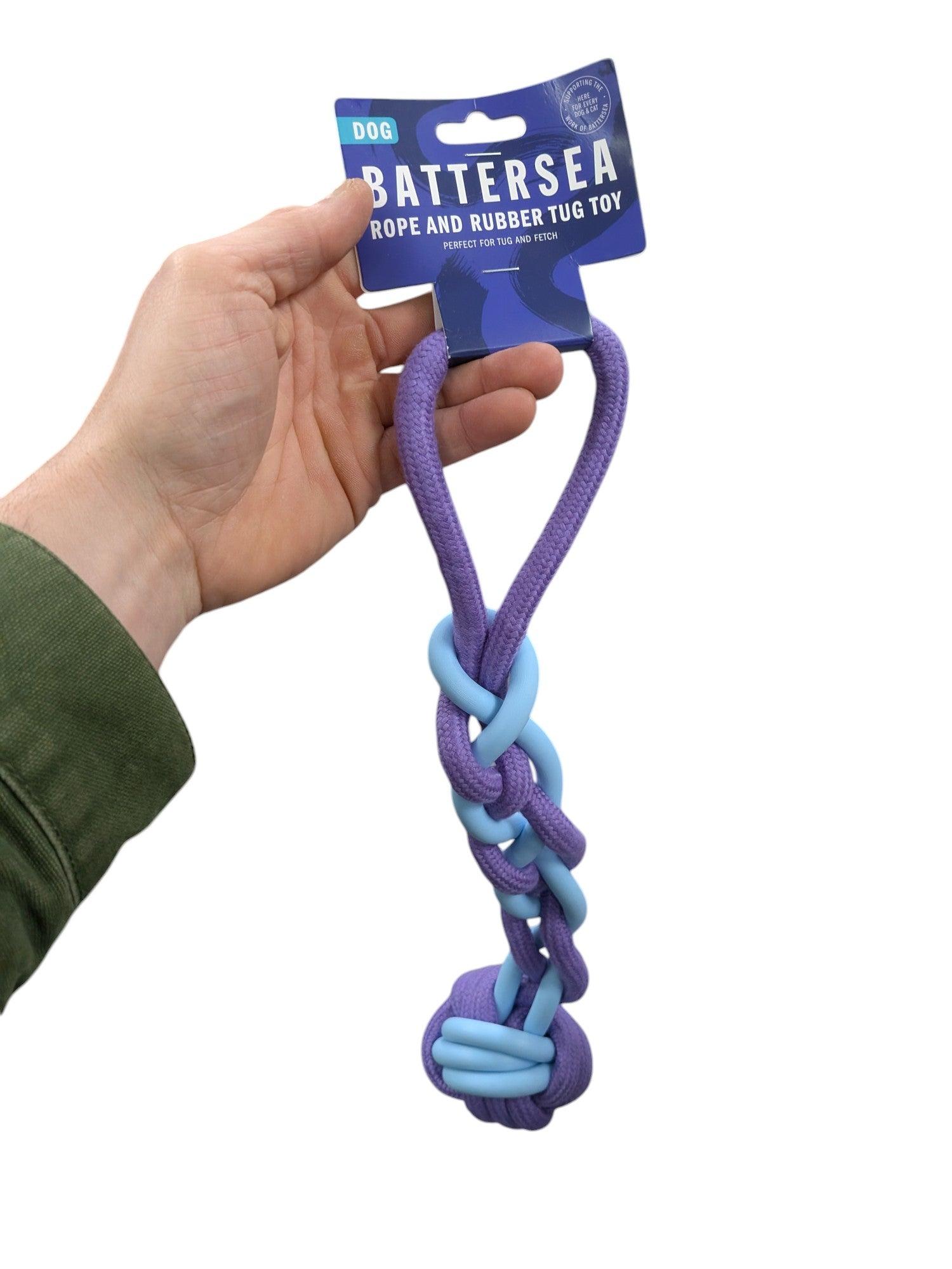 Das Battersea Rope/Rubber Tug Blue ist perfekt für mittelgroße bis große Hunde, die gerne interaktiv spielen und kauen. Ideal für drinnen und draußen.