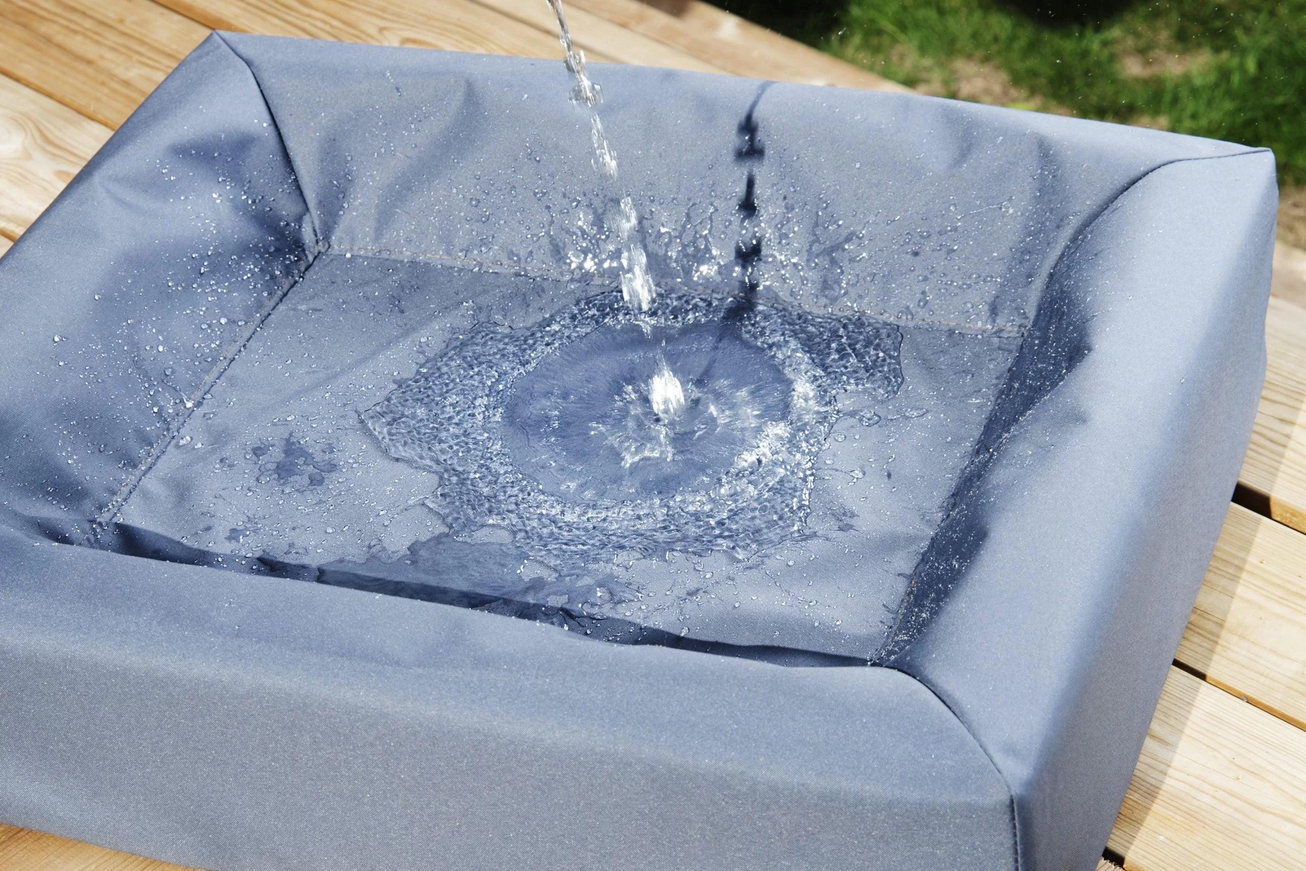 Diese Outdoor-Abdeckung ist mit einer fortschrittlichen Beschichtungstechnik ausgestattet, die das Eindringen von Wasser verhindert. Regen läuft einfach an den Seiten ab, und Restwasser lässt sich leicht entfernen. Das Material trocknet schnell, und dank der speziellen Unterseite ist das Bett vor aufsteigender Feuchtigkeit geschützt. So kann das Bia Bed das ganze Jahr über im Freien stehen.