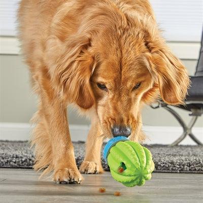 Der Brightkins Kaktus-Überraschungs-Leckerli-Spender ist ein 12,5 x 12,5 x 24,1 cm großes Intelligenzspielzeug, das die Beweglichkeit und kognitiven Fähigkeiten Ihres Hundes fördert. Der instabile Standfuß lässt den Kaktus in alle Richtungen wackeln, sodass Ihr Hund aktiv spielen muss, um an die Leckerlis zu kommen. Die kleine Öffnung an der Oberseite sorgt für eine allmähliche Freigabe von Leckerlis und Stückchen und eignet sich daher auch als langsamer Futterspender.
