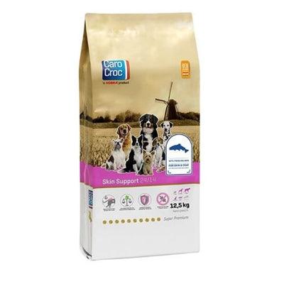 CaroCroc Skin Support ist ein Alleinfuttermittel, das speziell für Hunde mit empfindlicher Haut oder schlechtem Haut- und Fellzustand entwickelt wurde. Dieses hochwertige Futter enthält frischen Lachs und Lachsöl, reich an essentiellen Omega-3- und Omega-6-Fettsäuren. Diese Fettsäuren tragen zu gesunder Haut und glänzendem Fell bei, wirken entzündungshemmend und unterstützen das Immunsystem. Skin Support ist weizenglutenfrei und daher für Hunde mit Glutenunverträglichkeit geeignet.