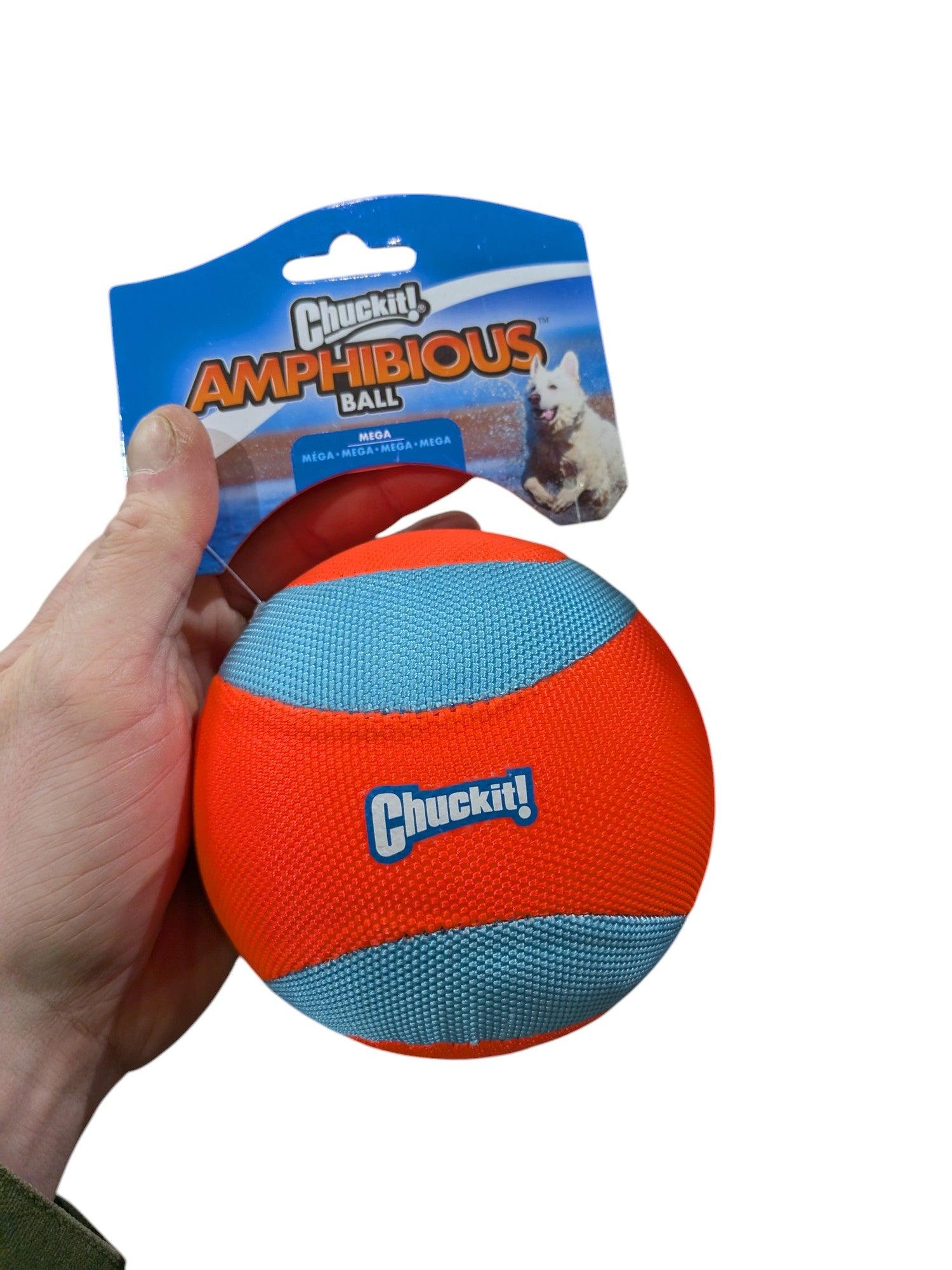 Der Chuckit Amphibious Mega Ball ist das perfekte Spielzeug für apportierende Hunde – sowohl an Land als auch im Wasser. Im Gegensatz zu herkömmlichen Tennisbällen, deren harte Fasern die Zähne schädigen können, besteht dieser Ball aus einem robusten und dennoch weichen Material, das Zähne und Zahnfleisch schont. Dank seines schwimmfähigen Designs eignet er sich ideal für Strand- und Wasserspiele. Die auffällige orange-blaue Farbe macht den Ball auch im Wasser gut sichtbar.