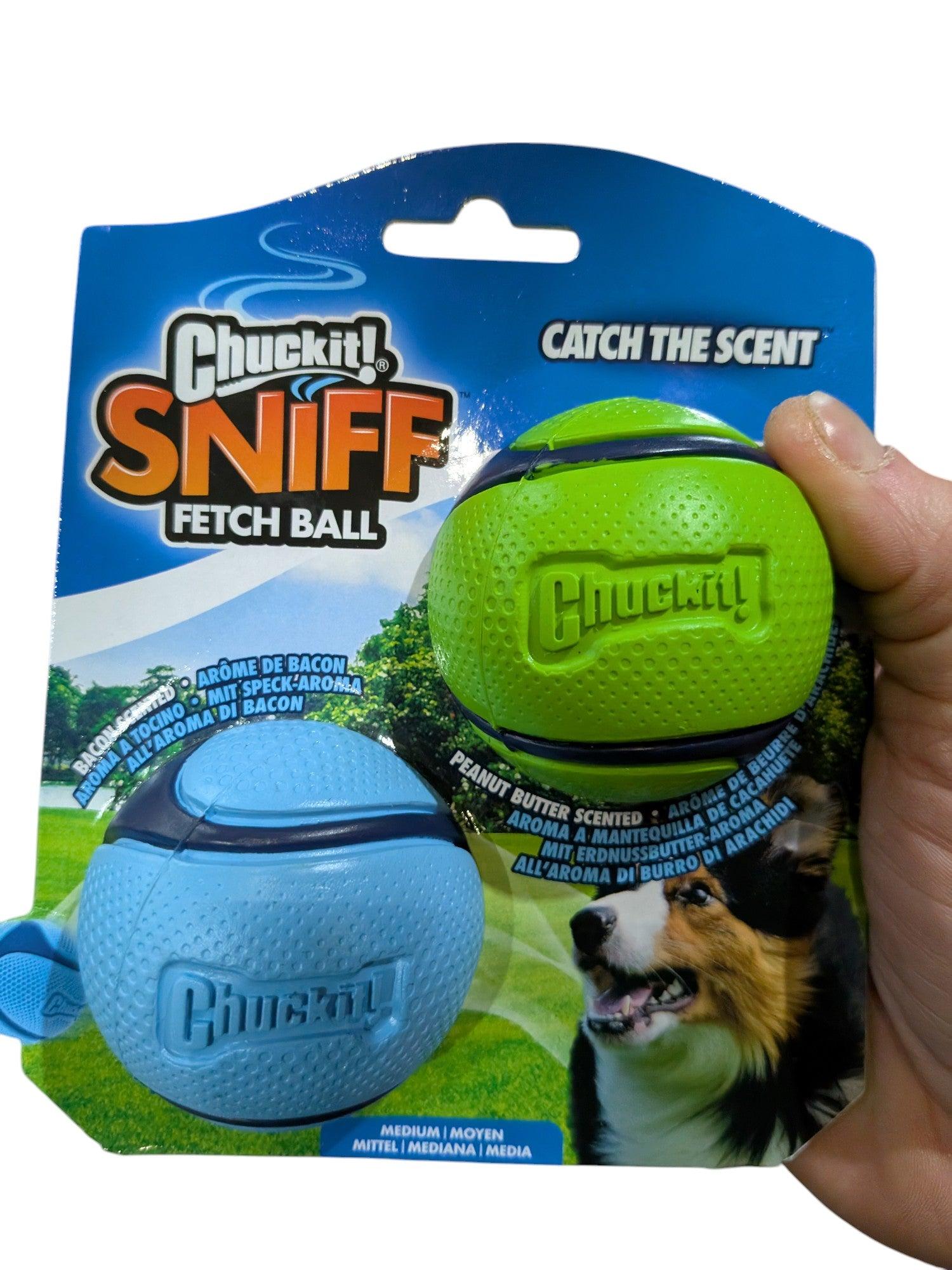 Chuckit Sniff Fetch Ball Combo – Apportierbälle mit Erdnussbutter- und Speckduft – 6 cm (2 Stück)