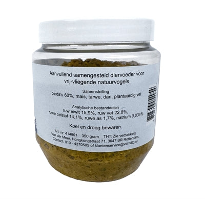 De Vries Bird Erdnussbutter 350 g ist ein Ergänzungsfuttermittel für Gartenvögel, mit dem Sie allen Gartenvögeln in den kalten Monaten des Jahres zusätzliches kalorienreiches Futter bieten können.
