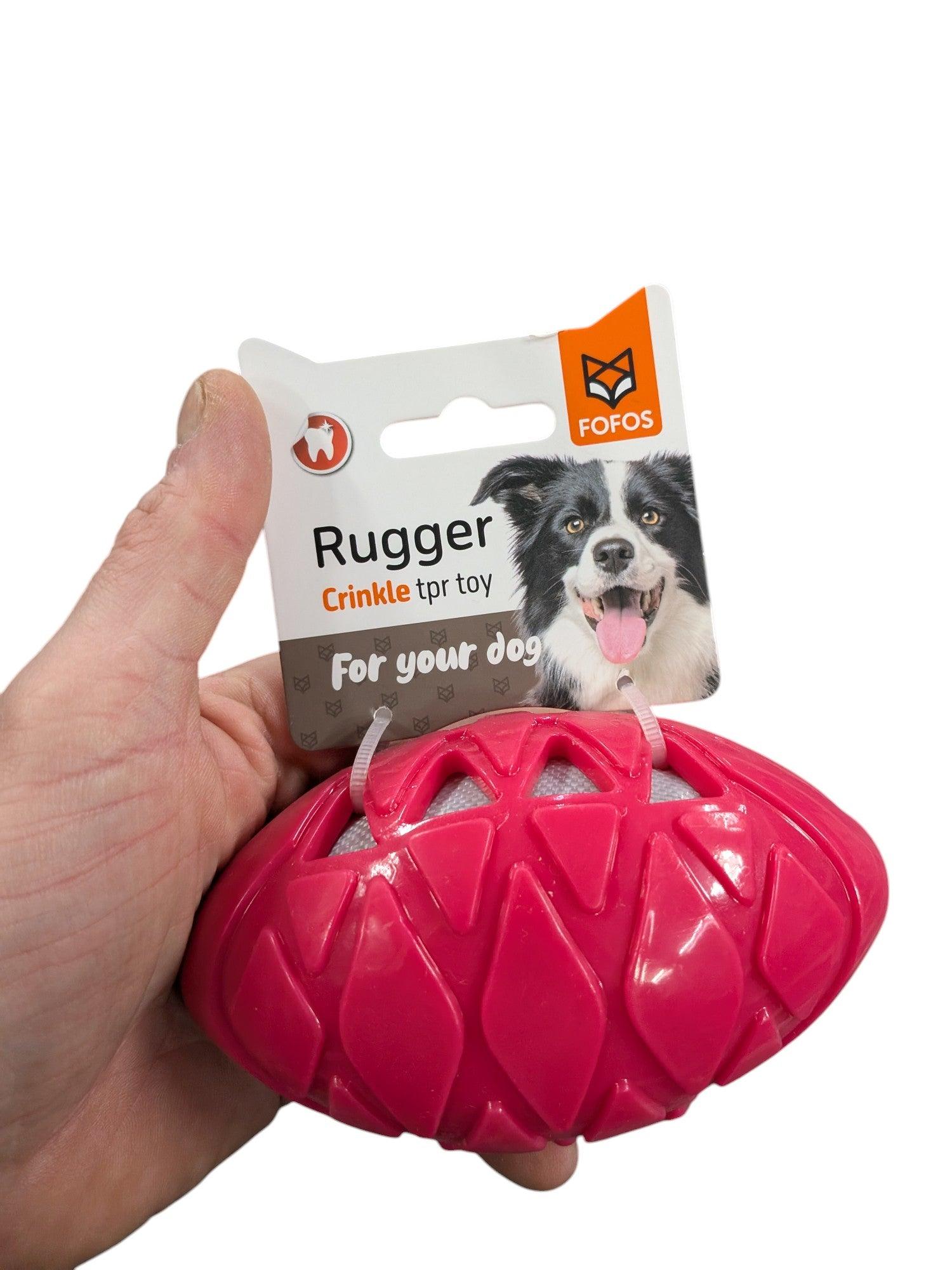 Der Fofos Crunch Rugby Ball Assorted ist ein robustes und interaktives Hundespielzeug mit den Maßen 13 x 7,5 x 7,5 cm, ideal zum Apportieren und Kauen. Die Außenseite besteht aus flexiblem TPR-Gummi, wodurch das Spielzeug angenehm in der Hand liegt. Die Innenseite ist mit raschelndem Nylon gefüllt, was das Kauen besonders attraktiv macht und die Sinne Ihres Hundes stimuliert. Dieser Artikel wird in verschiedenen Farben geliefert, daher ist eine Farbauswahl online nicht verfügbar.