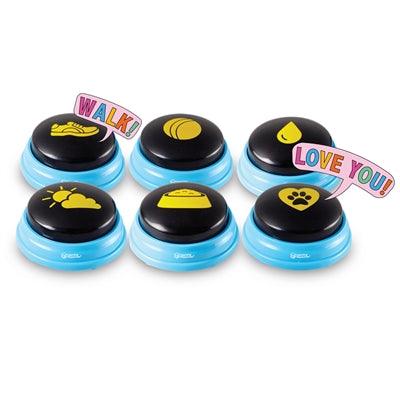 Das Hunger For Words Talking Pet Essential Words Set ist ein innovatives Set, mit dem Sie Ihrem Hund das Sprechen mithilfe von Sprachtasten beibringen können. Dieses Set enthält sechs voraufgezeichnete Tasten mit häufig verwendeten Wörtern, die für die tägliche Kommunikation mit Ihrem Hund wichtig sind.
