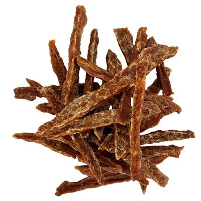 Die 400 Gramm schweren I Am Chicken Strips Hundeleckerlis sind leckere, ergänzende Kausnacks aus getrocknetem Hühnerfleisch für Ihren Hund. I Am Chicken Strips sind getrocknete Hühnerstücke. Durch den Trocknungsprozess werden die Streifen hart und haltbarer, ganz ohne künstliche Zusätze. Lecker als Belohnung oder Snack!
