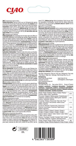 Zutaten: Wasser, Huhn, Tapiokastärke, natürliche Aromen, Guarkernmehl, Calciumcarbonat, natürliches Thunfischaroma, Fischöl, Vitamin-E-Ergänzung, Taurin, Grüntee-Extrakt