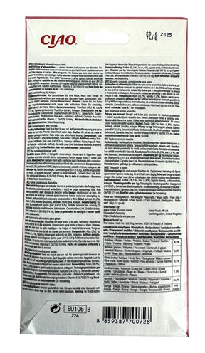 Inaba Churu Thunfisch/Lachs 4x14 Gramm ist ein cremiger, feuchtigkeitsreicher und getreidefreier Katzensnack. Katzen neigen oft dazu, zu wenig zu trinken, was zu Dehydrierung führen kann. Geben Sie Ihrer Katze diesen unwiderstehlichen Churu Katzensnack! Dieser köstliche Katzensnack wird mit einer feuchten Creme hergestellt und ist in Dosierbeuteln erhältlich. Katzen lieben die cremige Textur! Diese köstliche Rezeptur ist getreidefrei und enthält Vitamin E. Keine künstlichen Konservierungsstoffe!