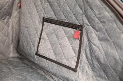 Die Ecken der Decke sind mit Reißverschlüssen versehen, sodass Sie die Form der Decke an Ihr Auto anpassen können, um einen bequemen, sicheren Sitz zu gewährleisten. Diese Decke aus strapazierfähigem Nylon mit einer weichen, gepolsterten Oberfläche ist ideal für kurze Ausflüge und lange Fahrten.