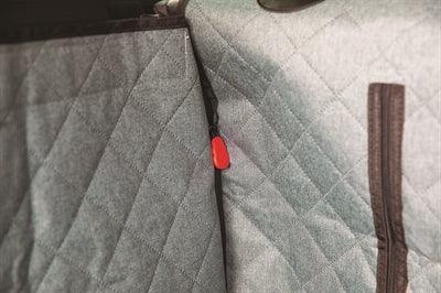 Die Decke passt sowohl in den Kofferraum größerer Autos als auch über den Rücksitz und schützt vor Schlamm, Sand, Wasser, Haaren und Kratzern. Die ausklappbare Stoßstangenklappe verhindert Beschädigungen beim Ein- und Aussteigen, und der mitgelieferte Drehgurt hält Ihren Hund sicher an seinem Platz – egal ob hinten im Laderaum oder auf dem Sitz neben Ihnen. Zwei Öffnungen in der Decke ermöglichen die Befestigung von einem oder zwei Sicherheitsgeschirren an einem Sicherheitsgurt oder Haken.