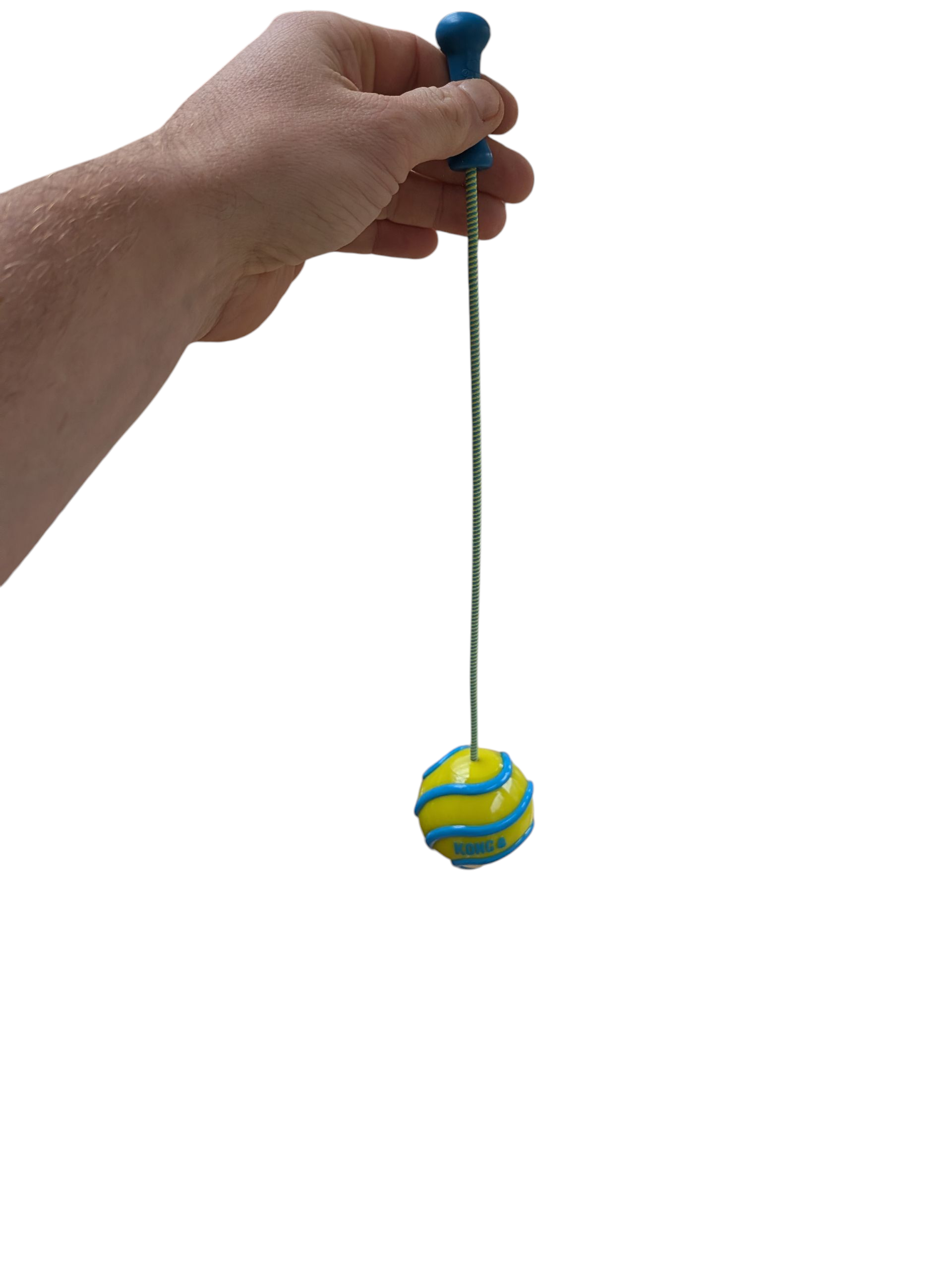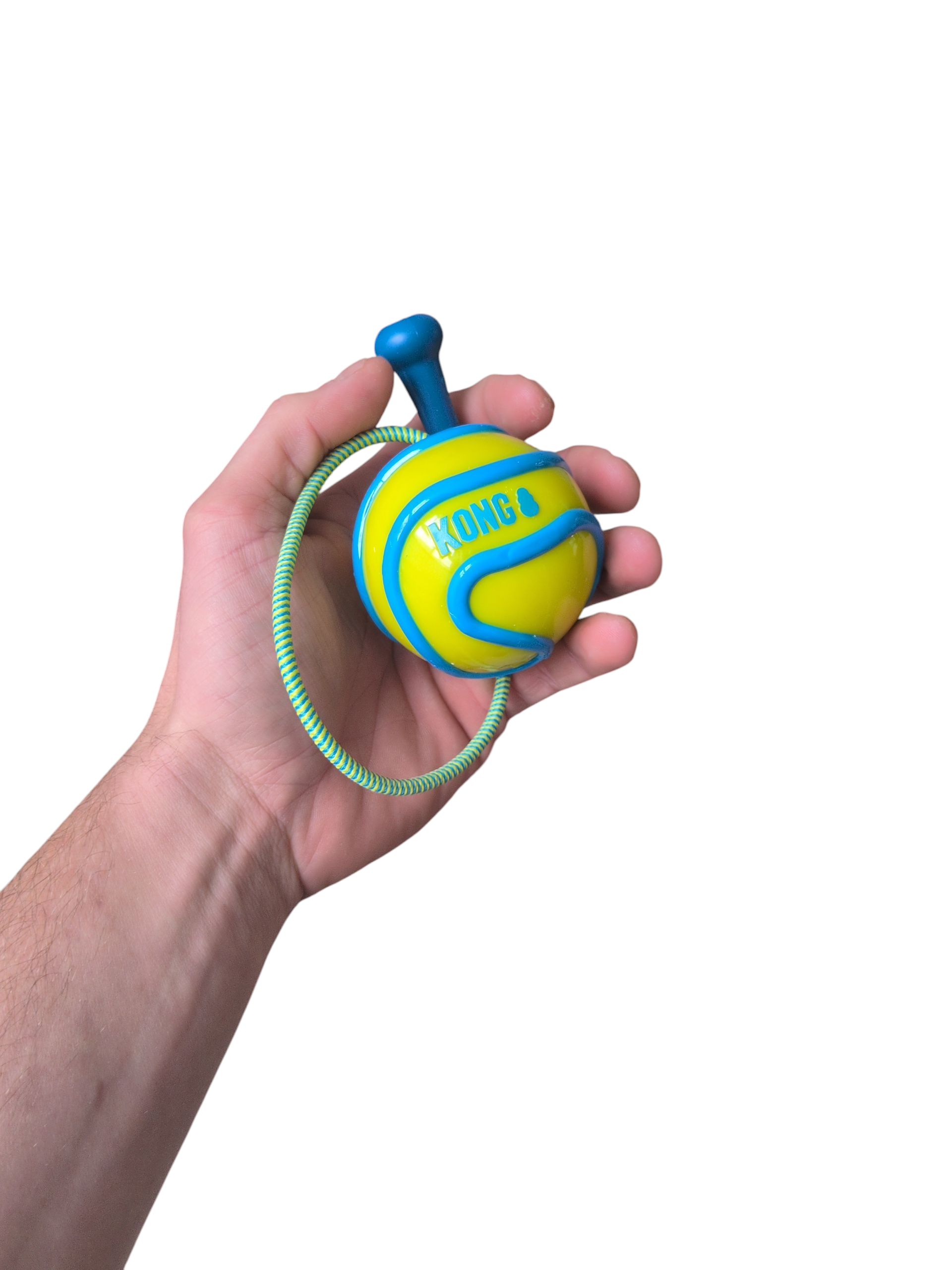 Dieser KONG Wavz Bunjiball wurde von unserem eigenen Hund Cessna ausgiebig getestet und genehmigt. Es ist ein super lustiger Ball, den man dank der Schnur sehr weit werfen kann, ohne viel Kraft aufzuwenden – und er ist viel handlicher mitzunehmen als ein Wurfstock. Der Gummiball ist robust und daher ideal für Hunde, die gerne kauen. Der Seilteil kann bei Außengebrauch schmutzig werden, lässt sich aber leicht abwaschen. Cessna liebt ihn – und für diesen Preis ist es ein großartiger Apportierball für jeden aktiven Hund!