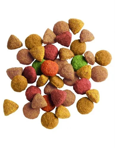 Getreide, Fleisch und tierische Nebenerzeugnisse (davon 25 % Huhn und 4 % Pute), pflanzliche Eiweißextrakte, Öle und Fette, pflanzliche Nebenerzeugnisse, Gemüse, Hefe, Mineralstoffe.