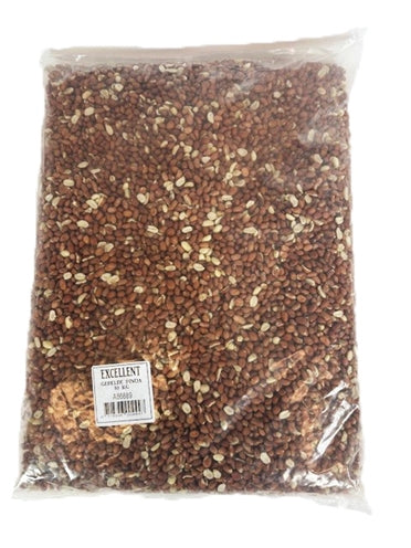 Beutel mit geschälten Erdnüssen, geeignet zur Fütterung von Freilandvögeln während der Wintermonate.
