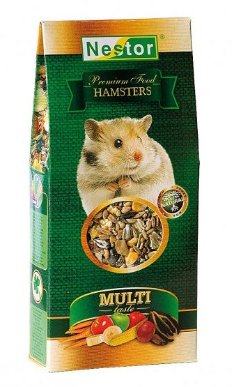 Wielosmakowy pokarm MULTI-TASTE PREMIUM oparty jest wyłącznie na naturalnych składnikach. Nie zawiera nie tylko żadnych konserwantów, ale i barwników. Receptura tej doskonale zbilansowanej mieszanki została opracowana z myślą o chomikach tak, by zapewnić im wyjątkowo smaczne pożywienie, które jednocześnie dostarcza wszystkich niezbędnych składników, wspomagających zdrowie i prawidłowe funkcjonowanie organizmów tych uroczych gryzoni.