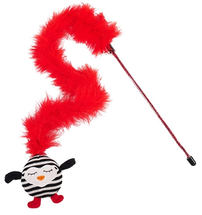 De Rosewood Kattenhengel Gestreepte Pinguïn Met Veer is kattenspeelgoed, een kattenhengel met een rode pluche boa en een pinguïn voorzien van kattenkruid. Spelen met een kattenhengel daagt uit tot interactief spelen, ideaal om de band tussen kat en baas te versterken. De hengel bestaat uit een lange boa van rood pluche met daaraan een pluche pinguïn. De pinguïn is gevuld met catnip en zal daardoor zeker de aandacht van jouw kat vasthouden.