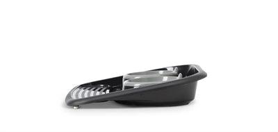 - Hoher Rand und Ablagefläche verhindern Verschütten und Verschmutzungen auf dem Boden