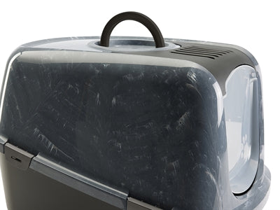 Die Katzentoilette ist mit einem Griff, einer Kunststofftür und einem austauschbaren Kohlefilter ausgestattet, um unangenehme Gerüche rund um die Katzentoilette zu verhindern.