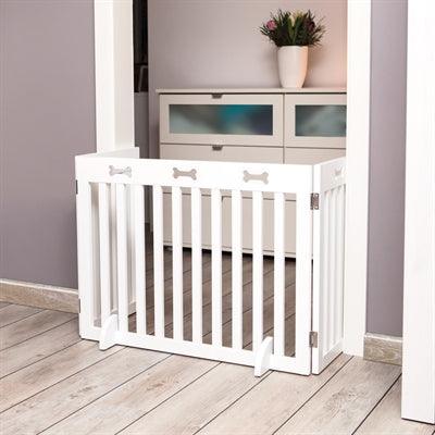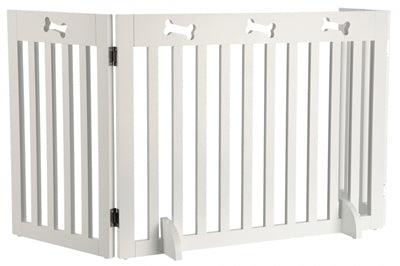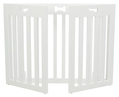 Dieses weiße Hundegitter Trixie Dog Barrier in der Größe 124 x 61 cm sperrt Räume oder Treppen für Ihren Hund ab.