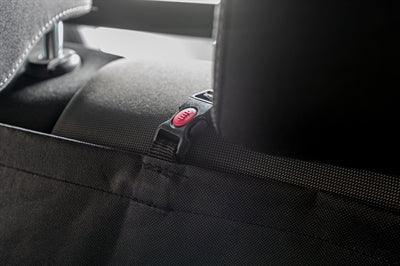 Ein besonderes Merkmal dieser Decke sind die seitlichen Abdeckungen, die an den Türen befestigt werden . Diese schützen nicht nur Ihre Türverkleidungen vor Haaren, Schlamm und Kratzern, sondern verhindern auch, dass Ihr Hund beim Öffnen einer Tür unerwartet aus dem Auto springt. Dank der Gurtöffnungen können Sie problemlos einen Sicherheitsgurt oder eine kurze Leine am Geschirr Ihres Hundes befestigen. Ein zusätzlicher Teil der Decke lässt sich hochklappen und bietet so Platz für einen Mitfahrer auf dem Rücksitz.