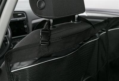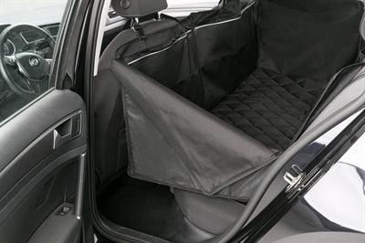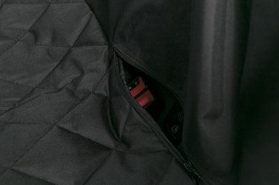 Mit praktischen Schlaufen lässt sich die Decke einfach an den Kopfstützen der Vorder- und Rücksitze befestigen. Die hohen Seitenwände schützen die Türen vor Kratzern, Schmutz und schlammigen Pfoten. Diese Seitenwände lassen sich per Reißverschluss öffnen und herunterklappen, was Ihrem Hund das Ein- und Aussteigen erleichtert. Dank der Gurtausschnitte können Sie Ihren Hund sicher mit einem Geschirr anschnallen. Und wenn Sie möchten, dass jemand neben Ihrem Hund auf dem Rücksitz sitzt? Kein Problem: Die Decke lässt sich in zwei Hälften teilen.