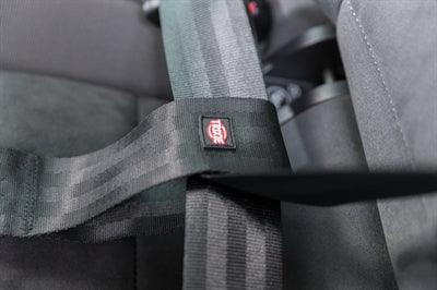 Befestigung: Schlaufe um den Autosicherheitsgurt + Karabinerhaken am Hosenträgergurt