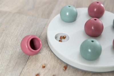 Spielbrett mit 7 Kugeln. Ihre Katze muss die Kugeln verschieben, um an die Leckerlis zu gelangen. Für körperliche und geistige Anregung. Mit rutschfester Unterseite.