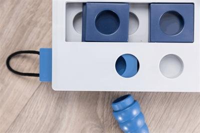 Mit dem Mini Mover Brettspiel können Sie Leckerlis oder Trockenfutter in den verschiedenen Fächern verstecken. Ihr Hund muss dann Schieber öffnen, Kegel anheben und Schubladen öffnen, um sein Leckerli zu finden. Dank der rutschfesten Gummifüße bleibt das Spiel auch bei eifrigen Suchern sicher an seinem Platz. Dank des robusten Kunststoffmaterials lässt sich das Spiel nach Gebrauch leicht reinigen.