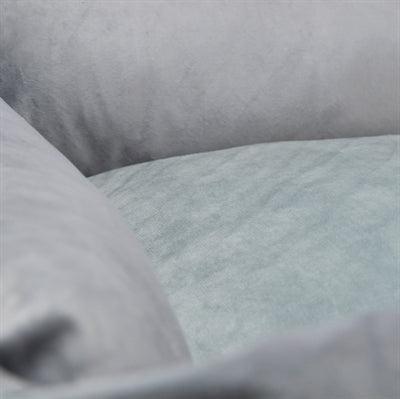Der abnehmbare Bezug ist bei 40 Grad Celsius maschinenwaschbar. Die Füllung sollte per Hand gewaschen werden, um ihre Qualität und Form zu erhalten.