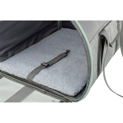 Die Tasche verfügt über große, feinmaschige Einsätze, die eine optimale Luftzirkulation ermöglichen und Insekten fernhalten. Der Innenraum ist mit einem weich gepolsterten Boden in Schaffelloptik ausgestattet, der zur einfachen Pflege abnehmbar ist. Der abnehmbare und stufenlos verstellbare Schultergurt ermöglicht bequemes und flexibles Tragen – ganz nach Ihren Wünschen.