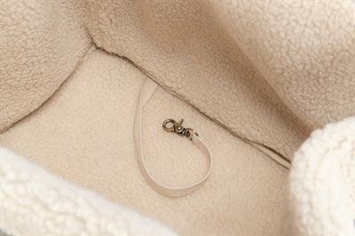 Die Tasche verfügt über einen herausnehmbaren Plüscheinsatz in Schaffelloptik, der Ihrem Hund zusätzlichen Komfort bietet. Dieser Einsatz lässt sich leicht von Hand waschen und hält die Tasche frisch und hygienisch. Dank des integrierten kurzen Riemens bleibt Ihr Hund beim Tragen sicher an seinem Platz. Die robuste Konstruktion und das weiche Futter machen diese Tasche zu einer zuverlässigen Wahl für den Alltag, Kurztrips und öffentliche Verkehrsmittel.