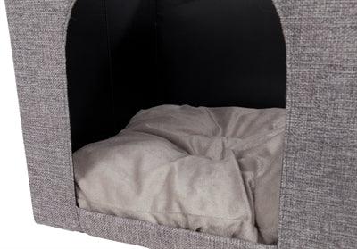 Dieses Haus aus strapazierfähigem Polyester ist formstabil und isolierend. Es besteht aus grauem Webstoff. Eine echte Bereicherung für Sie und Ihre Katze!