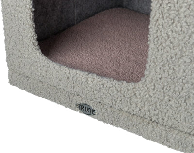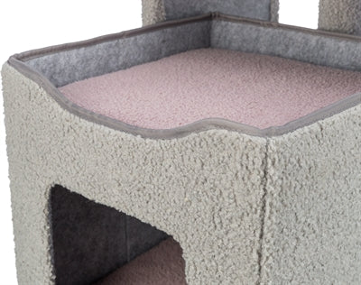 Der Trixie Carlita Kitten Kratzbaum in Grau/Flieder (63 cm) ist ein Kratzbaum im Schaffell-Stil für Kätzchen mit einem Versteck und zwei Liegeflächen. Kratzen ist eine natürliche Aktivität für Katzen: Es hilft ihnen, ihre Krallen zu pflegen und ihr Revier zu markieren. Damit Ihr Kätzchen nicht lernt, seine Krallen an Möbeln zu schärfen, ist es ratsam, viele Kratzmöglichkeiten in der Wohnung zu haben. Dieser praktische Kratzbaum ist dafür perfekt geeignet! Der Baum besteht aus einem Versteck, zwei Liegeflächen und zwei Platten mit Sisalpolsterung zum Krallenschärfen. Das Versteck verfügt über eine gepolsterte Liegefläche und eine abnehmbare, wendbare Matte, die von Hand waschbar ist. Der Korb hat einen bequemen, gepolsterten Rand.