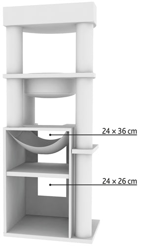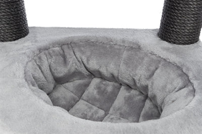 Der Trixie Kratzbaum XXL Leandro Grau 63 x 50 x 163 cm ist ein extragroßer Kratzbaum für große Katzenrassen mit Verstecken, einem gemütlichen Schlafsack, einer Hängematte und einer Liegefläche. Möchten Sie Ihren Katzen den ultimativen Luxus bieten? Dann entscheiden Sie sich für diesen umfangreichen Kratzbaum von Trixie! Der Kratzbaum XXL Leandro ist ein sehr umfangreicher Kratzbaum, der auch für größere Katzenrassen geeignet ist. Dieser sehr komplette Kratzbaum besteht unter anderem aus mehreren mit Sisal überzogenen Kratzstämmen, einem mit Plüsch überzogenen Versteck im Inneren und einer Liegefläche mit einem Korb mit gepolstertem Rand. Ihre Katze kann außerdem im robusten, gepolsterten, gemütlichen Schlafsack und der abnehmbaren Hängematte im Versteck faulenzen. Für zusätzlichen Kratzspaß verfügt die Seite des Kratzbaums zusätzlich über eine große Sisal-Kratzfläche. Ausgestattet mit einer dicken, massiven Bodenplatte für zusätzliche Stabilität, die sicherstellt, dass der Kratzbaum auch dann stabil bleibt, wenn große Katzen wie Maine Coons und Wildkatzen darauf herumspringen.