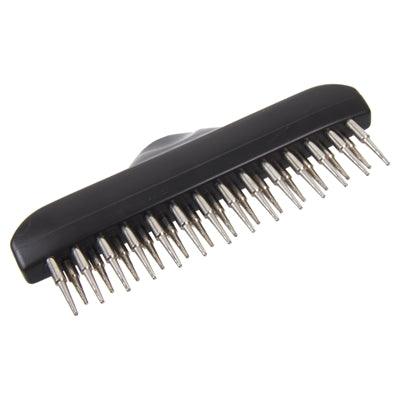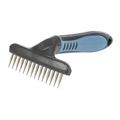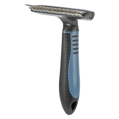 Dieser Metallkamm eignet sich dank seiner doppelten Zahnreihe für eine noch intensivere Pflege der Unterwolle von Hunden mit langem Haar.