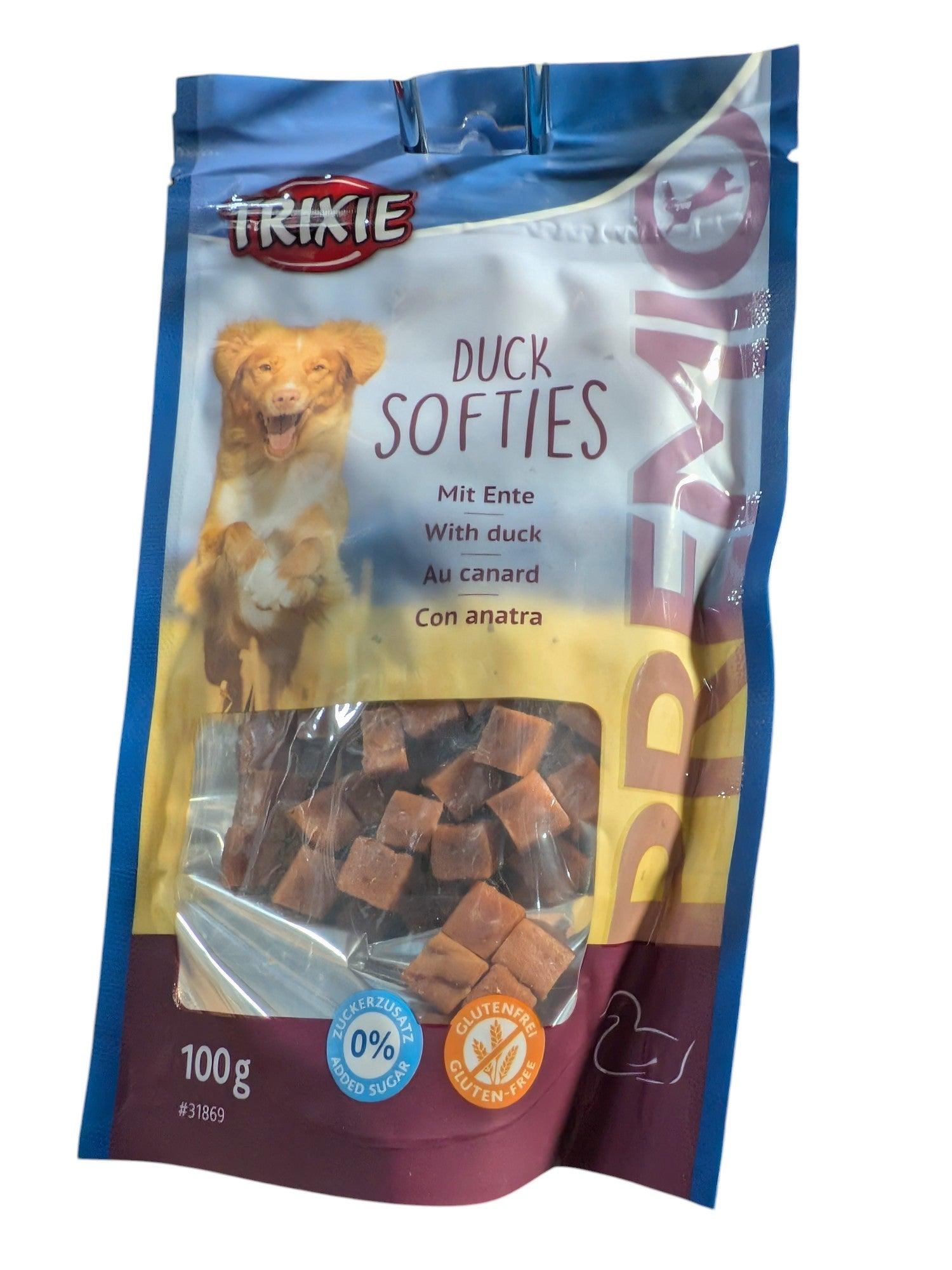 Trixie Premio Duck Softies (100 Gramm) sind ein Ergänzungsfuttermittel für Hunde. Es sind leckere Belohnungssnacks mit Ente und reich an Proteinen. Diese leckeren Snacks enthalten satte 65 % Fleisch! Der ideale, gesunde Snack für Ihren Hund. Dank ihrer kompakten Größe eignen sie sich hervorragend als Trainingsbelohnung. Diese leckeren Snacks werden ohne Zucker- und Glutenzusatz hergestellt.