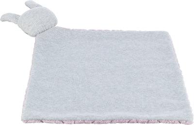 Trixie Welpendecke Bunny Lila/Hellgrau – Weiche Plüschdecke mit Spielzeug – 55 x 40 cm