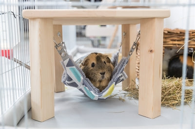 Das Trixie Sunny Versteck mit Hängematte, sortiert/grau, 28 x 28 x 24 cm, ist ein Versteck für Nagetiere wie Meerschweinchen mit Hängematte. Ihr Meerschweinchen kann dieses Haus sowohl als Versteck als auch als Beobachtungsposten nutzen! Das Haus aus unbehandeltem Holz ist einfach aufzubauen. Im Inneren befindet sich eine Hängematte, deren Höhe Sie dank der verschiedenen Ösen leicht verstellen können. Die Hängematte besteht aus weichem Plüsch und ist handwaschbar.