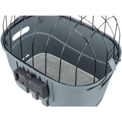 Der Fahrradkorb besteht aus einem robusten Kunststoffbehälter mit einem stabilen Metallgitterdeckel. So bleibt Ihr Hund sicher an seinem Platz und kann die Natur genießen. Im Inneren verhindert eine Antirutschmatte, dass Ihr Hund beim Radfahren ausrutscht. Außerdem gibt es einen Befestigungspunkt für eine Kurzleine oder Hundeleine, sodass Sie Ihren Hund sicher anschnallen können.