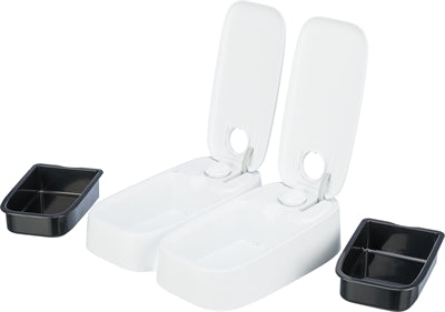 Der Trixie Tx2 Automatische Futterspender in Weiß/Schwarz 2x300 ml ist ein Futternapf, der während Ihrer Abwesenheit Futter und Wasser bereitstellt.
