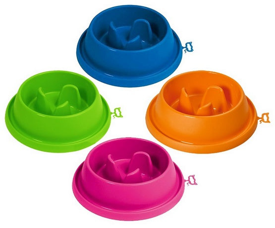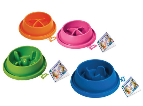 Miska z tworzywa, którą zaprojektowano w celu utrudnienia natychmiastowego spożycia karmy. Dno z wypustkami, które znacznie spowalniają pupila, pomaga uniknąć problemów żołądkowych w wyniku przejedzenia i ogranicza zadławienia.