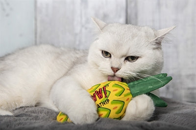 Yeowww Pineapple ist ein ananasförmiges Katzenspielzeug mit Katzenminze. Der strapazierfähige Baumwollbezug der Ananas ist mit 41 Gramm 100 % biologischer Katzenminze gefüllt, ohne Füllstoffe oder Chemikalien. Die Ananas hat knackige Stacheln für zusätzliche Textur und Klang und sorgt so für zusätzlichen Spielspaß.